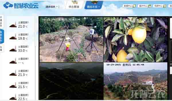 江西贛州的春秋農莊是一家集臍橙種植與銷售、旅游觀光為一體的綠色生態企業。農莊現種植臍橙1800余畝,在密集的橙樹林間,可以看到各式各樣的監測儀器,它們是浙江托普云農科技股份有限公司打造的農業物聯網系統,包括小型氣象站、高清攝像頭和蟲情測報燈等系統硬件。
