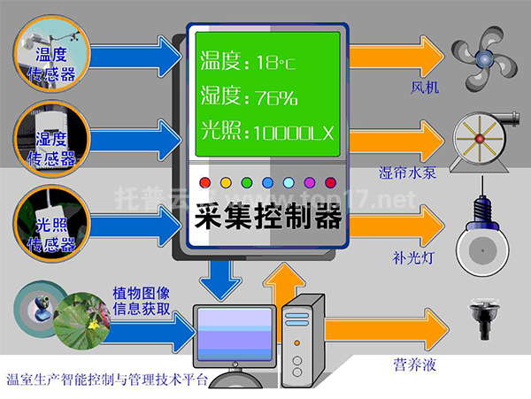 智能化溫室擁有溫室環(huán)境智能監(jiān)控系統(tǒng),可以準(zhǔn)確地采集溫室內(nèi)大氣溫濕度、土壤溫濕度、光照強(qiáng)度、溶液濃度、二氧化碳濃度、風(fēng)向、風(fēng)速以及作物生長(zhǎng)狀況等參數(shù),將室內(nèi)溫、光、水、肥、氣等諸多因素綜合,根據(jù)不同作物、作物不同生長(zhǎng)階段對(duì)環(huán)境因子的不同要求,通過(guò)執(zhí)行機(jī)構(gòu)協(xié)調(diào)到最佳狀態(tài),節(jié)能最高可達(dá)50%,并有節(jié)水、節(jié)肥、節(jié)藥的效果。