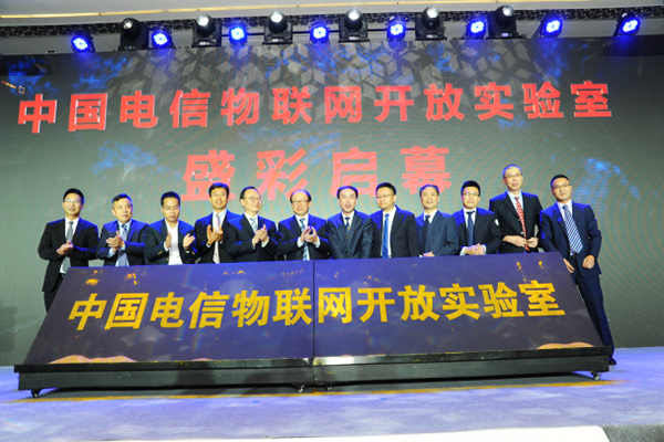 托普云農董事長陳渝陽(右一)在中國電信物聯網開放實驗室啟動儀式上