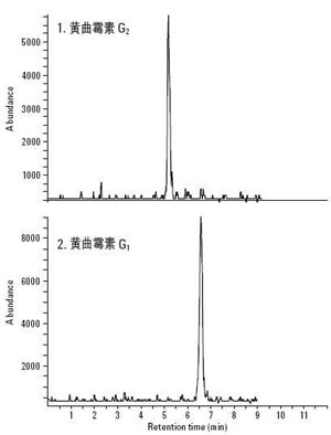 黃曲霉素是黃曲霉菌、寄生曲霉菌產(chǎn)生的代謝物,劇毒,同時(shí)有致癌、致畸等作用。會(huì)引起人體骨骼,內(nèi)臟器官等的病變,甚至癌變。黃曲霉菌廣泛存在于土壤中,因此一般的作物如花生、玉米、大米等農(nóng)作物都很容易感染黃曲霉菌。另外如胡桃、杏仁等干果也可能含有黃曲霉素。黃曲霉素的產(chǎn)生,不僅在種植過程中,還包括加工過程。黃曲霉素分為四種,B1、B2、G1、G2,其中黃曲霉素b1毒性最大。下面介紹下這四種黃曲霉素的MRM色譜圖。