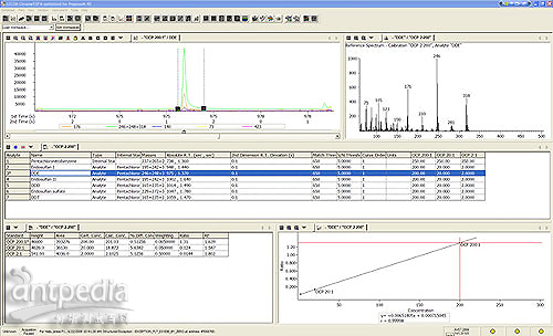 盡管自動化在增加數據評價通量方面極其重要,但軟件的布局和設計也同樣重要。用戶必須能夠在軟件的一個區域內無縫流暢地工作,而不需要為完成單個任務在面板/窗口之間來回移動。將不同信息以一種有助于增加速度、便捷性和靈活性的方式列出也非常重要。當查看樣品或標樣時使信息列出的能力、如何列出信息的靈活性以及信息在屏幕上顯示的位置,都會增加操作者的工作效率。圖4的屏幕截圖中,展示了校正多個分析物的增強功能。從這個單一的界面中,除了出現的標樣外,分析者還能看到校正中分析物的列表,以及標樣中每一個待測物的色譜和質譜圖。