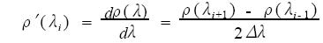 ,式中,ρ′(λi ) 為λi 處的一階微分光譜,λi 是波段i 的波長(zhǎng)值、ρ(λi ) 是波長(zhǎng)λi 處的光譜值(如反射率、透射率等) ,Δλ是波長(zhǎng)λi - 1到λi 的間隔,視波段波長(zhǎng)而定。