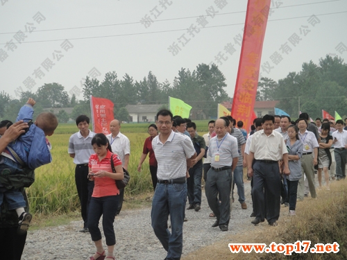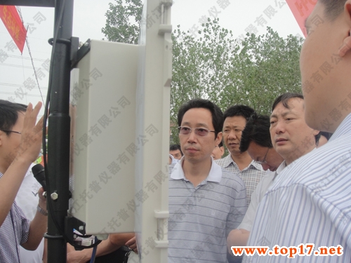 會議結束后,參會人員一同參觀了荊州區川店鎮千畝高產示范片。托普參會人員現場安裝了固定式無線農業氣象綜合監測站并進行實際操作。湖北省農業廳徐能海副廳長與各工作者駐足觀看、仔細聽取儀器講解,并詳細詢問產品細節,對此款儀器表現出了濃厚的興趣。