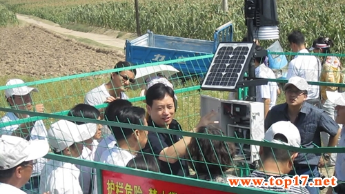 在示范區(qū)內(nèi),護(hù)欄內(nèi)的固定式無線農(nóng)業(yè)氣象綜合監(jiān)測站吸引了高處長及各參會代表的注意。陳渝陽總經(jīng)理詳細(xì)介紹了此系統(tǒng)的功能、用途,并現(xiàn)場簡單進(jìn)行操作講解。各參會工作者不時(shí)詢問儀器性能、監(jiān)測時(shí)間設(shè)定、數(shù)據(jù)發(fā)送、數(shù)據(jù)查看、供電時(shí)間等細(xì)節(jié)問題,陳總經(jīng)理一一做出詳細(xì)解答。高處長在陳總經(jīng)理的指導(dǎo)下親自進(jìn)行了操作。