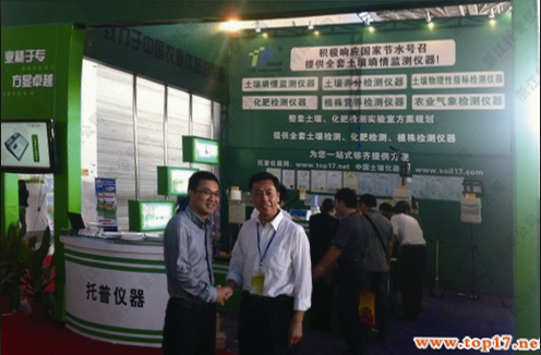 今年8月初,在蘭州召開的2011年全國旱作節(jié)水農(nóng)業(yè)技術(shù)培訓(xùn)班上,崔站長已經(jīng)對托普儀器印象深刻,在榆中縣的甘肅省土壤墑情與旱情監(jiān)測示范區(qū)進行實地參觀、考察時,更是現(xiàn)場對托普儀器的無線多點土壤墑情監(jiān)測系統(tǒng)進行的了操作,并對此儀器的性能予以充分的肯定。此次土肥雙交會上,也專程到托普展區(qū)參觀、指導(dǎo)。托普儀器總經(jīng)理陳渝陽先生陪同參觀,并介紹了托普儀器的發(fā)展概況及其他土肥類檢測儀器。