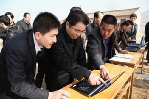 圖為:托普儀器技術(shù)人員為葉貞琴司長(zhǎng)(中間)演示電腦查看墑情數(shù)據(jù)
