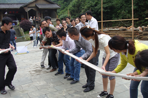 活動項目一:雷區取水,各團隊必須在規定時間內,依靠團隊的協作和智慧將在雷區內的液態炸彈(裝滿水的桶)排除,并安全放在雷區外的彈藥庫;項目二:極速60秒,教練在一個限制區內放置了30張未知的數字信息,各隊成員需派出一名隊員,要在兩次進入限制區的機會內將這些數字信息有小到大的撿出并且排列好;項目三、挑戰五分鐘,隊員需在五分鐘內挑戰完成各個項目;項目四:畢業墻,全體隊員要在不借助任何的物品與工具下,在規定時間內翻越一堵高四米的墻。這些項目看似簡單,卻處處需要智慧。各個隊員親身體驗,參與各個項目之中,并在這種特定環境中去思考、去發現、去領悟,進而對自己、對同事、對整個托普大家庭重新認識、重新定位。