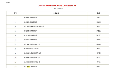 根據《杭州市科技型初創企業培育工程“雛鷹杯”評比獎勵辦法》,杭州市科學技術委員會開展了2012年杭州市“雛鷹杯”最具成長潛力企業評選活動。經過推薦、初評、終評等評選環節,現將浙江托普儀器有限公司列為2012年杭州市“雛鷹杯”最具成長潛力企業。