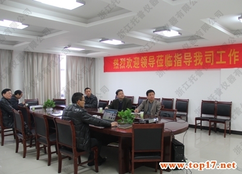2013年3月4日上午,杭州市經濟與信息化委員會郝志毅副主任、魏兆宏副處長、賴國軍副調研員、區發改局陳副仁副局長來到浙江托普儀器有限公司進行視察指導工作。托普儀器總經理陳渝陽對各位領導的到來表示熱烈的歡迎。