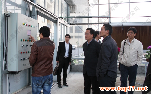 圖為:托普儀器技術(shù)人員為吳處長等領(lǐng)導(dǎo)演示物聯(lián)網(wǎng)智能控制柜的操作