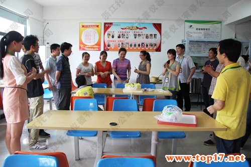 5月25日中午,托普儀器公司二樓員工食堂傳出陣陣“祝你生日快樂”的歌聲,原來,是工會在為3-5月生日的員工過一個集體生日!
