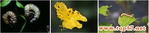圖為:啃食植株的蠐螬、瑩蟲、毛毛蟲