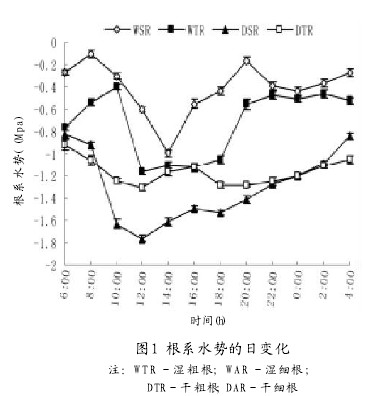 2.1 葡萄根系水勢與含水量的日變化