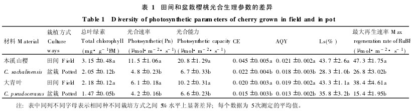 2.1田間與盆栽櫻桃植株光合特性的差異