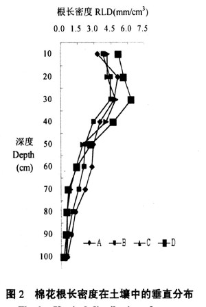 2.2 棉花根系在土壤中的垂直分布