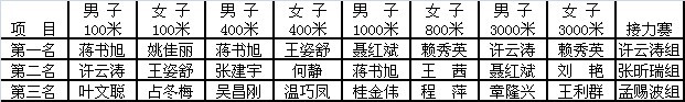 此次田徑運(yùn)動(dòng)會(huì)分為男子100米、女子100米;男子400米,女子400米;男子1000米,女子800米;男子3000米,女子3000米;男女混合4*200米接力賽。賽制為,初賽取(每組取前兩名和成績(jī)最好的兩名共六名人員進(jìn)入決賽)前三名進(jìn)入決賽,決賽取前三名為獲獎(jiǎng)選手。上午9:10,運(yùn)動(dòng)會(huì)在女子400米初賽中拉開帷幕。