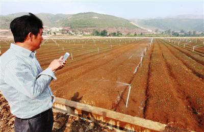 “我現(xiàn)在即使是在北京、上海等大城市,用手機(jī)也可以遙控自家的田地,還可以看見田里的實時畫面,這個功能很強(qiáng)大!”開遠(yuǎn)市壹佳益種植有限公司總經(jīng)理、開遠(yuǎn)市的“鄉(xiāng)土能人”王中壹在田邊拿著手機(jī)邊演示給記者看邊介紹,水噴濕了褲子也全然不顧。