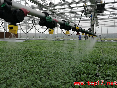 通過托普云農物聯網控制的自走式噴灌機在工作中