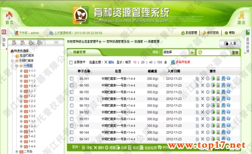 (3)預警提醒:對儲存期到期、庫存量低于預設值、發芽率低于預設值、達到庫存核對時間的種子進行自動提醒,防止種子生活力喪失以及庫存不足。