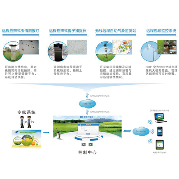 托普農(nóng)作物重大病蟲害數(shù)字化監(jiān)測預(yù)警系統(tǒng)由蟲情信息自動采集分析系統(tǒng)、孢子信息自動捕捉培養(yǎng)系統(tǒng)、遠(yuǎn)程小氣候信息采集系統(tǒng)、病蟲害遠(yuǎn)程監(jiān)控設(shè)備、害蟲性誘智能測報系統(tǒng)等設(shè)備組成,可自動完成蟲情信息、病菌孢子、農(nóng)林氣象信息的圖像及數(shù)據(jù)采集,并自動上傳至云服務(wù)器,用戶通過網(wǎng)頁、手機(jī)即可聯(lián)合作物管理知識、作物圖庫、災(zāi)害指標(biāo)等模塊,對作物實(shí)時遠(yuǎn)程監(jiān)測與診斷,提供智能化、自動化管理決策,是農(nóng)業(yè)技術(shù)人員管理農(nóng)業(yè)生產(chǎn)的“千里眼”和“聽診器”。